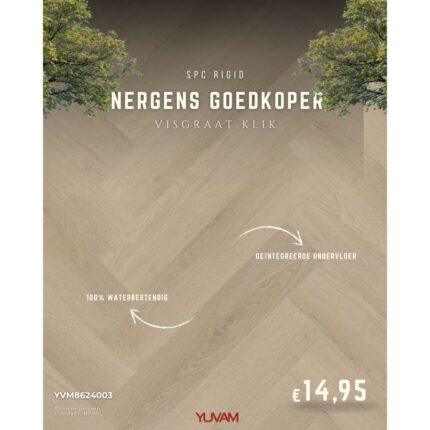 Pure herringbone PVC klik visgraat Dark oak 640x128x5mm Incl. ondervloer