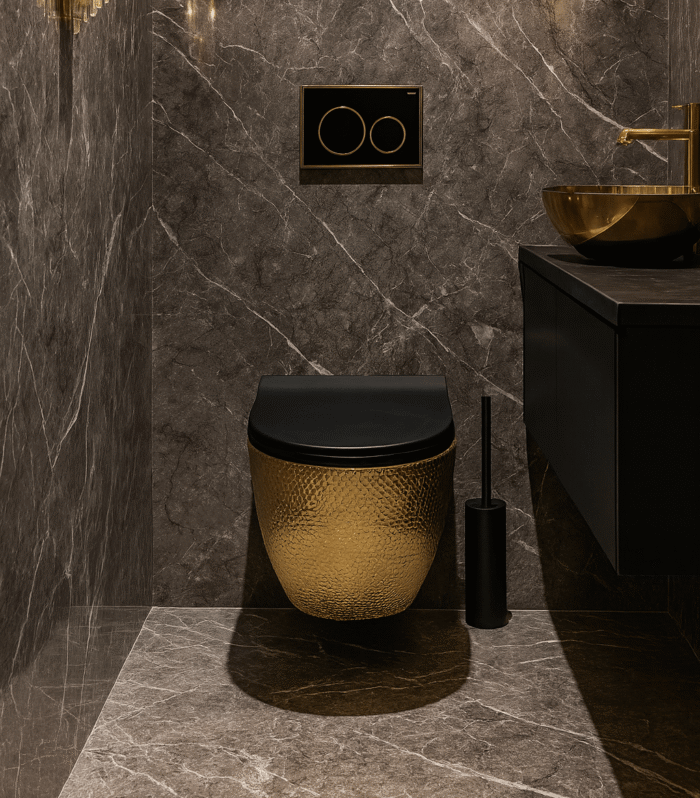 Hangend toilet croco goud/zwart Livorno Inclusief Duroplast Slimline Softclose Quick Release Zitting (zwart)