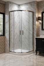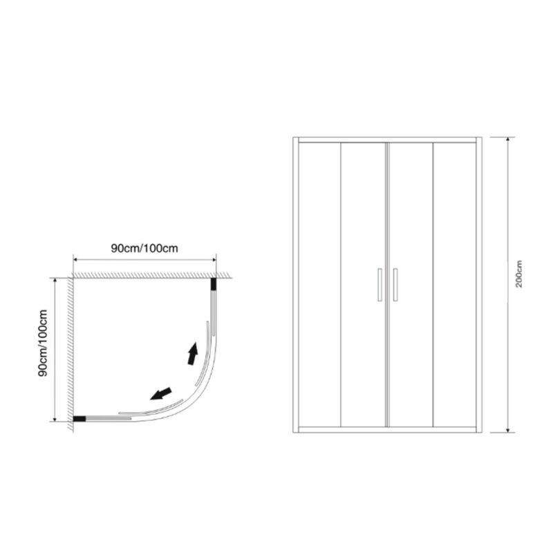 Pisa kwartrond douchecabine met 6mm helder glas, verkrijgbaar in chroom of zwart.