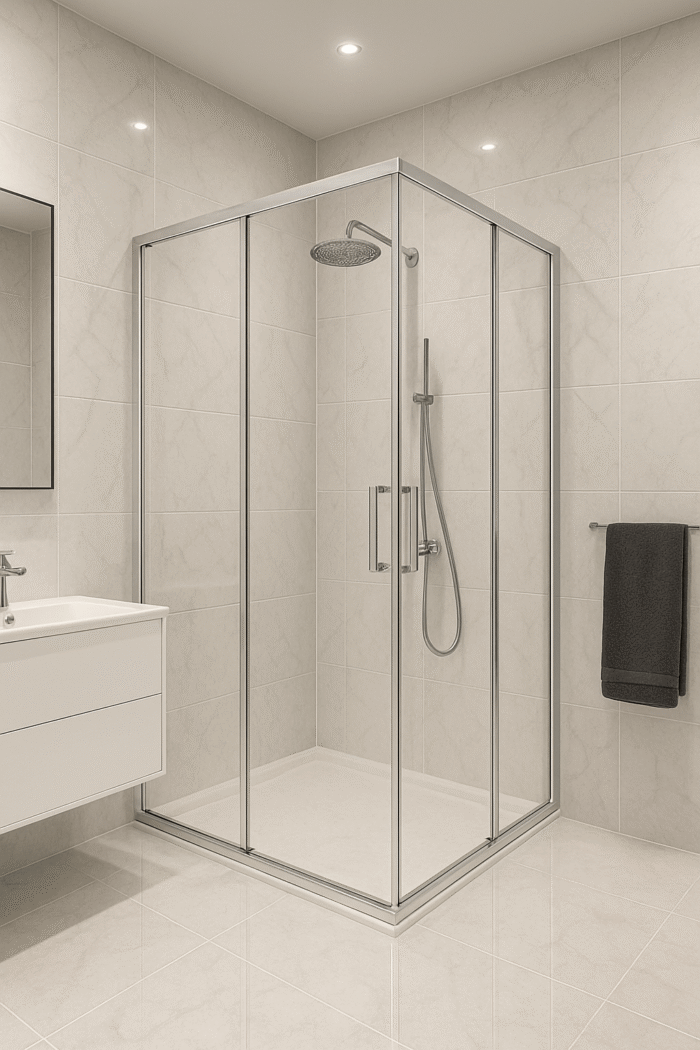 Brescia douchecabine met 6mm helder glas, verkrijgbaar in chroom of zwart.