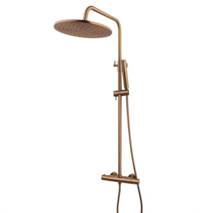 Wiesbaden Caral thermostatische Regendoucheset opbouw geborsteld Brons koper PVD